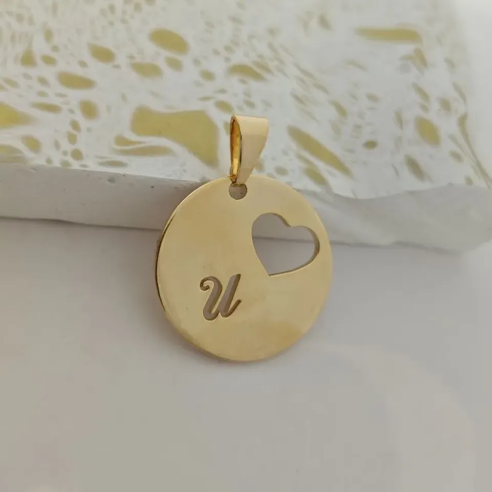 pingente medalha coração letra T...